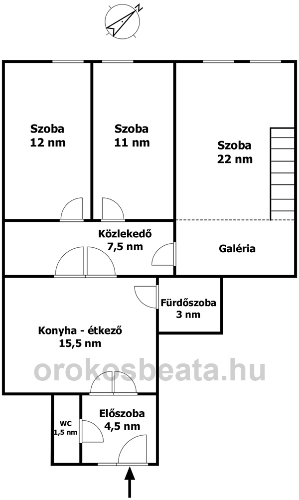 – legnagyobb szoba: 22 nm-es, ebben a szobában van egy galéria is