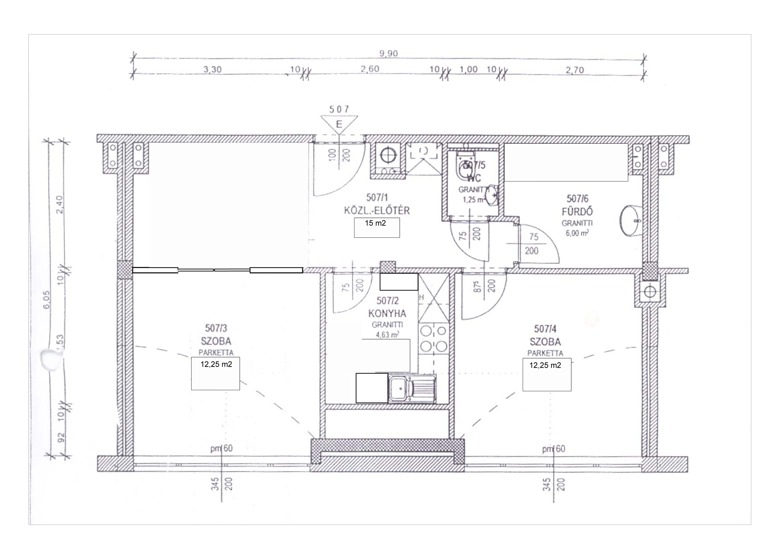 * Elrendezés: 2 szoba + étkező