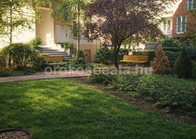 Az épület 6 emeletes, liftes, zárt lépcsőházas, téglaépítésű társasház, amelynek egyik külön értéke a **belső udvar**, itt a lakóközösség számára kialakított kis kert, árnyas fák, padok teremtenek békés, barátságos hangulatot.