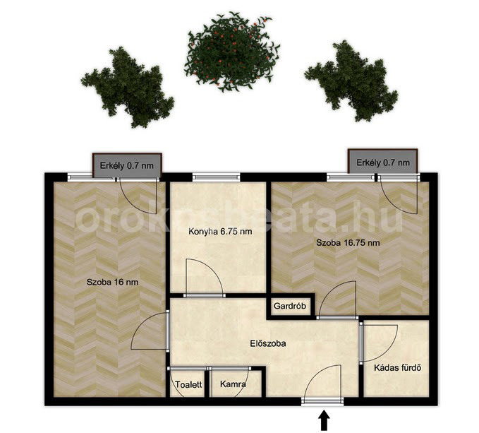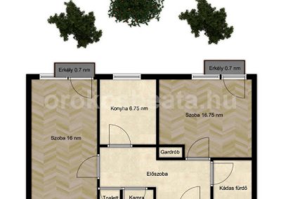 - 2 külön nyíló 16 nm, 16.75 nm szoba + 0.7 nm erkélyekkel ÉNY tájolással