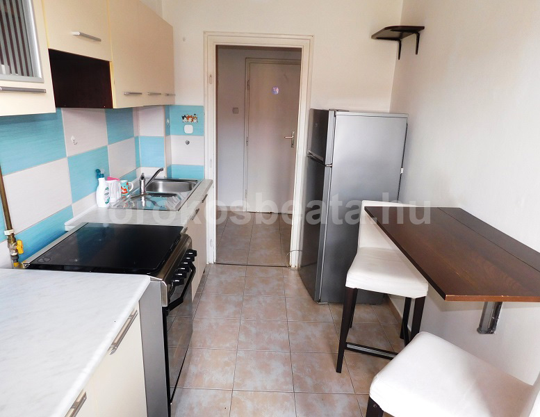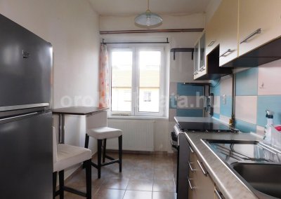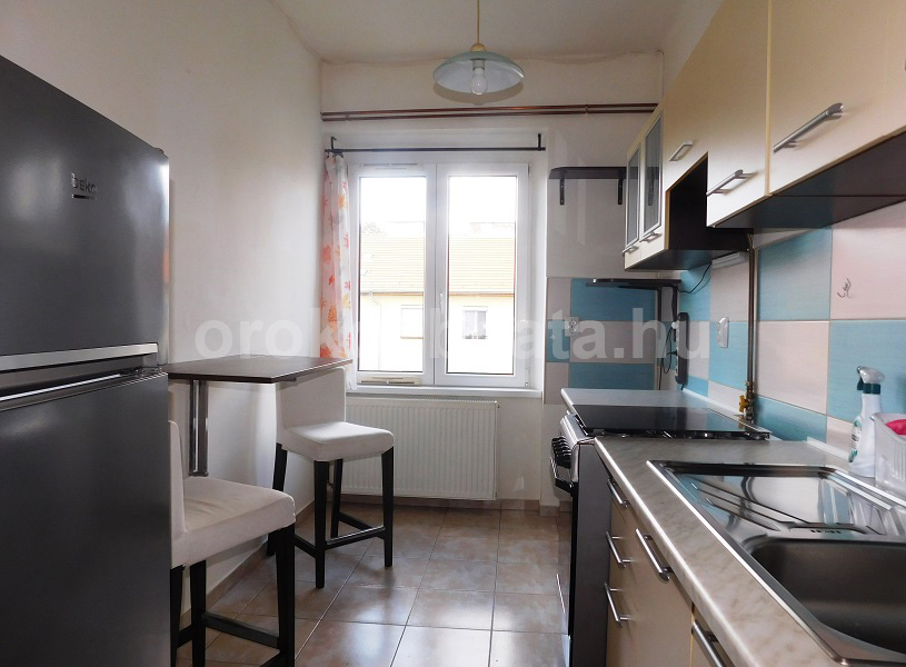 - Szeparált 6.75 nm ablakos konyha kombi tűzhellyel (gáztűzhely, el. sütő) kétmedencés mosogatóval és kétfős étkezővel. Saját kamra külön.