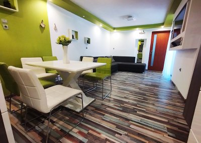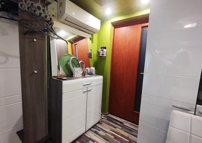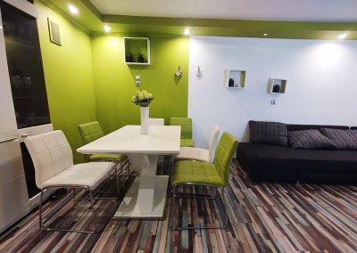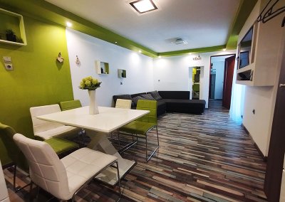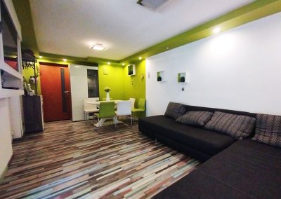 A lakás modern stílusa letisztultságot és egyensúlyt áraszt, ideális tér a jelenlét megéléséhez – legyen szó nyugalomról, alkotásról vagy pihenésről.